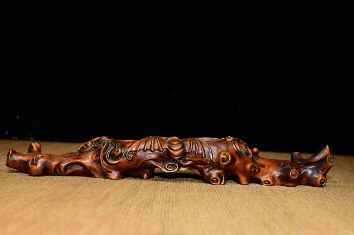- 『館蔵珍品 黄楊木製 細密彫 筆洗 置物 賞物』稀少珍蔵品 古賞物 貴重物品 収蔵品 中国古美術 時代物 古董品