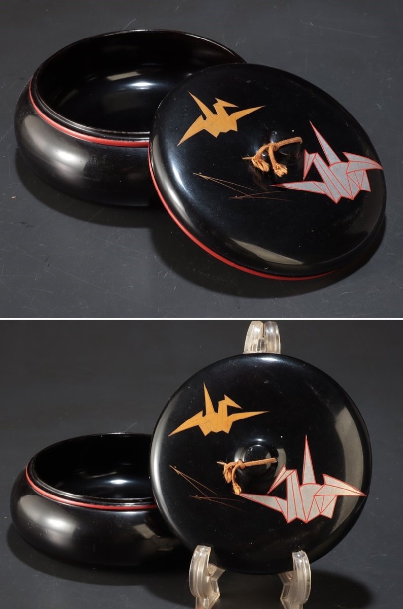 ■【夢讃岐】木製漆器 鶴蒔絵・菓子器 Φ170 H65 bp613 ■ 商品詳細 御覧頂き、ありがとうございます。 【夢讃岐】木製漆器 鶴蒔絵・菓子器 Φ170 H65 bp613 ○商品状態○経年あります。 状態に関しては,充分に画像で確認の上、クレームの無い様に御入札下さい。 ○サイズ○ Φ--mm/高さ--mm ぐらい画像参照ください。 ○御一読下さい○2025年で、昭和100年です。私共の扱う品は、大半の物が半世紀から一世紀以前の品です。 新品と表記しない限り,確実に経年有りますので, 新品とは違い、擦れアタリ等は有るとお考え下さい。 また細かい見落とし等も時代古物とお考えの上御容赦下さい。 気になる箇所は、画像にもアップ致しますので、ご了承の上御入札下さい。 記載・画像掲載されてない,見落としに関しては、常識の範囲で誠意対応致します。 他にも漆器をメインに出品しておりますので、ぜひ御覧下さい 。