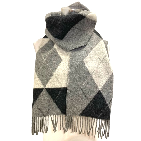 - プリングル Pringle マフラー ストール フリンジ ウール アーガイル柄 グレー レディース