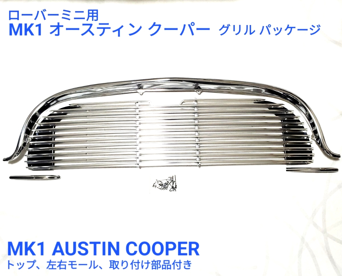 > ローバーミニ クラシックミニ MK1 オースチン クーパー クーパーS 細穴有り フロントグリル モールセット 取付部品付き 24A198 KIT 新品