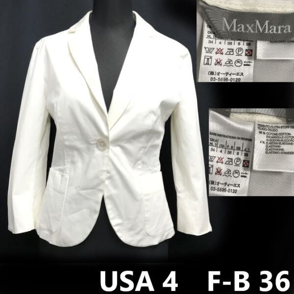 - 日本正規代理店タグ★マックスマーラ/MaxMara★春夏/七分袖/ストレッチジャケット【USA4 F-B36/レディースS-M/白】ブレザー◆cBH754