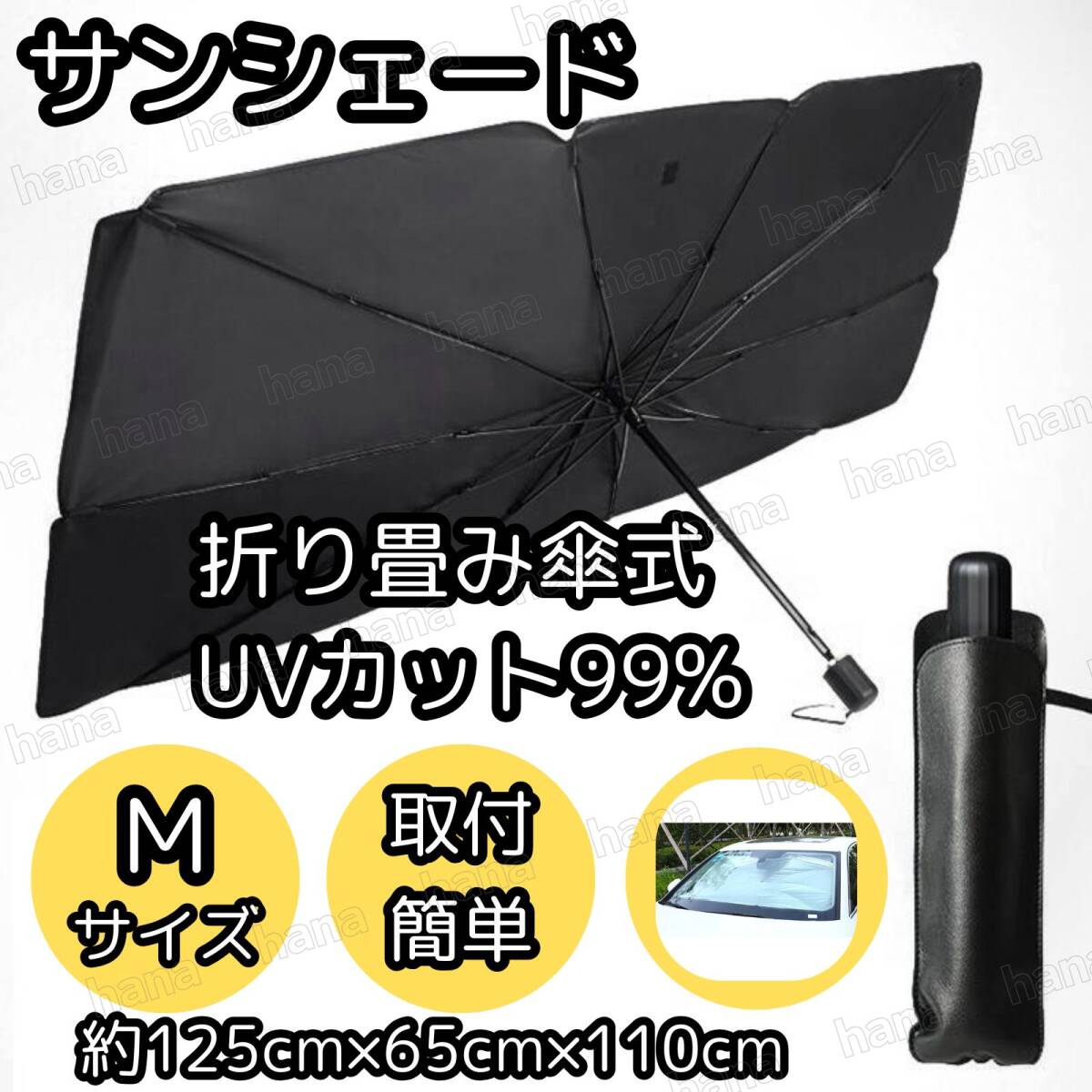 - サンシェード Mサイズ 傘型 折りたたみ式 フロントガラス用 UVカット 車用サンシェード 折り畳み式 日除け 車用 折り畳み