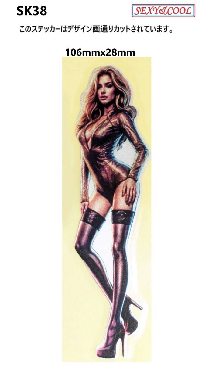 > SK38-02F 特価 美人 ハイヒール ストッキング スレンダー SEXY!! キラキラ セクシーステッカー レトロ ギター ボード デカール