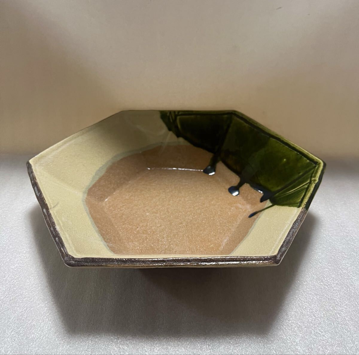 - 未使用 六角鉢 織部 多用鉢 盛鉢 中鉢 鉢 大鉢 和食器 鳴海織部 作家物 時代物 古い 角鉢