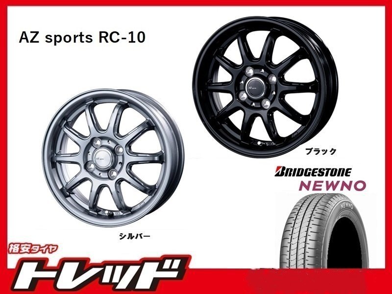 > (数量限定 2023年製)新横浜師岡店 新サマータイヤアルミ4本set ベスト AZ-Sports RC10 14インチ4.5J4穴100+45 NEWNO 165/65R14
