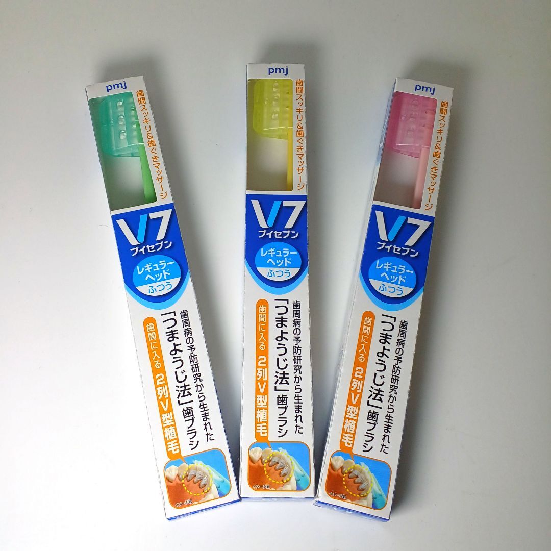 - ブイセブン V7 歯ブラシ レギュラーヘッド 毛のかたさ ふつう 3本セット 長持ちキャップ付 pmj正規品 つまようじ法 3本組 ★送料無料★