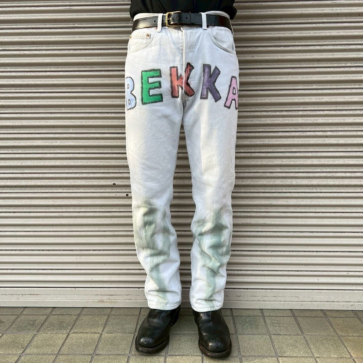 - 90s USA製 Levi's 501 ハンドペイント ホワイト デニムパンツ W32 L30 W82cm ジーンズ リーバイス コットン ヴィンテージ ワーク 517 80s