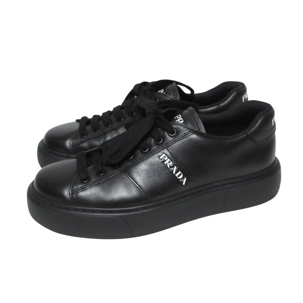 - 美品近年メンズPRADAプラットフォーム厚底スニーカー黒レザー7.5約26.5前後