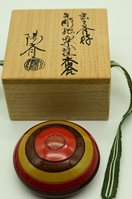 - 茶道具 岡本陽斉 毛彫 独楽塗 香合 玄々斎好 美品