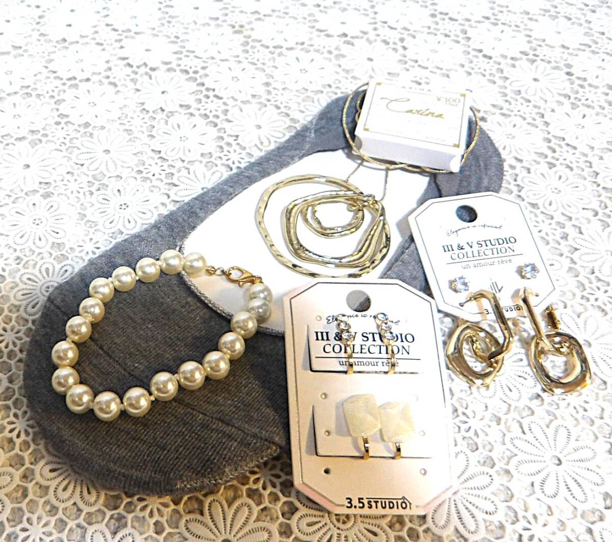> セール★イヤリングorピアス選べるアクセサリーセット⑲ ソックスカバー(フットソックス)・フープネックレス・パールブレス ゴールド