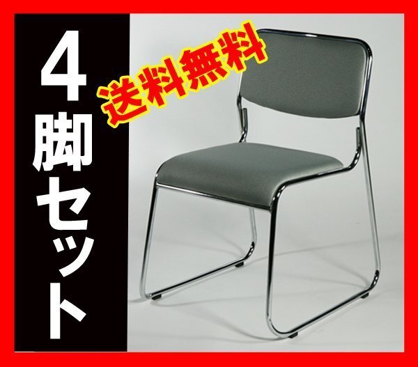 - 送料無料 新品 4脚セット ファブリック ミーティングチェア 会議イス 会議椅子 スタッキングチェア パイプチェア パイプイス グレー