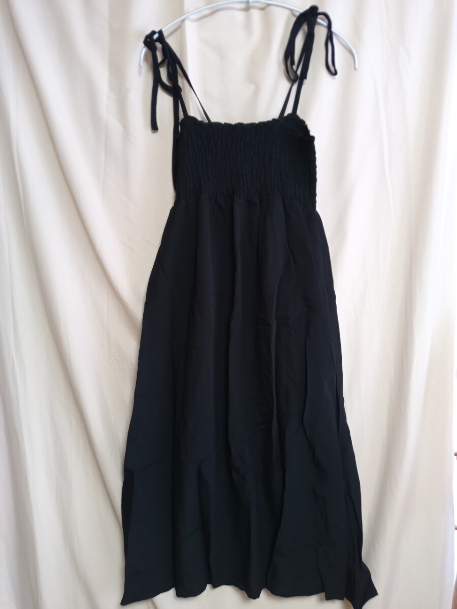 - 1820 ★★ Flower ナチュラルキャミワンピース 胸元シャーリング 黒 定価10208円 新品