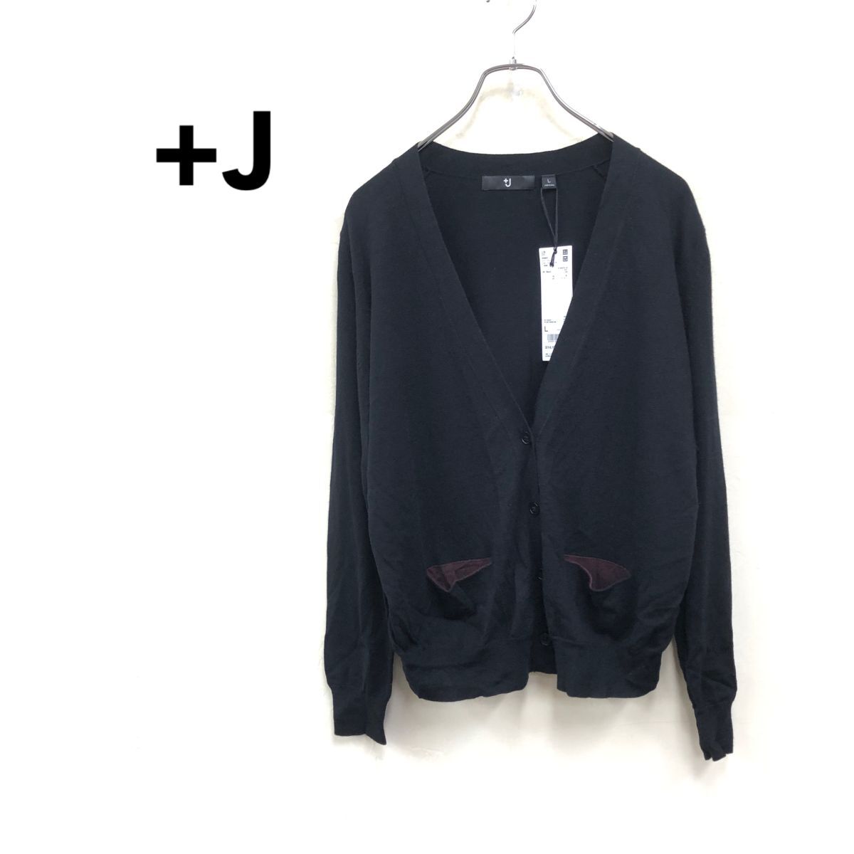 - 2K1379-Y◆タグ付◆+J UNIQLO プラスジェイ ユニクロ メリノブレンド長袖Vネックカーディガン ハイゲージ レディース ◆sizeL ブラック 毛