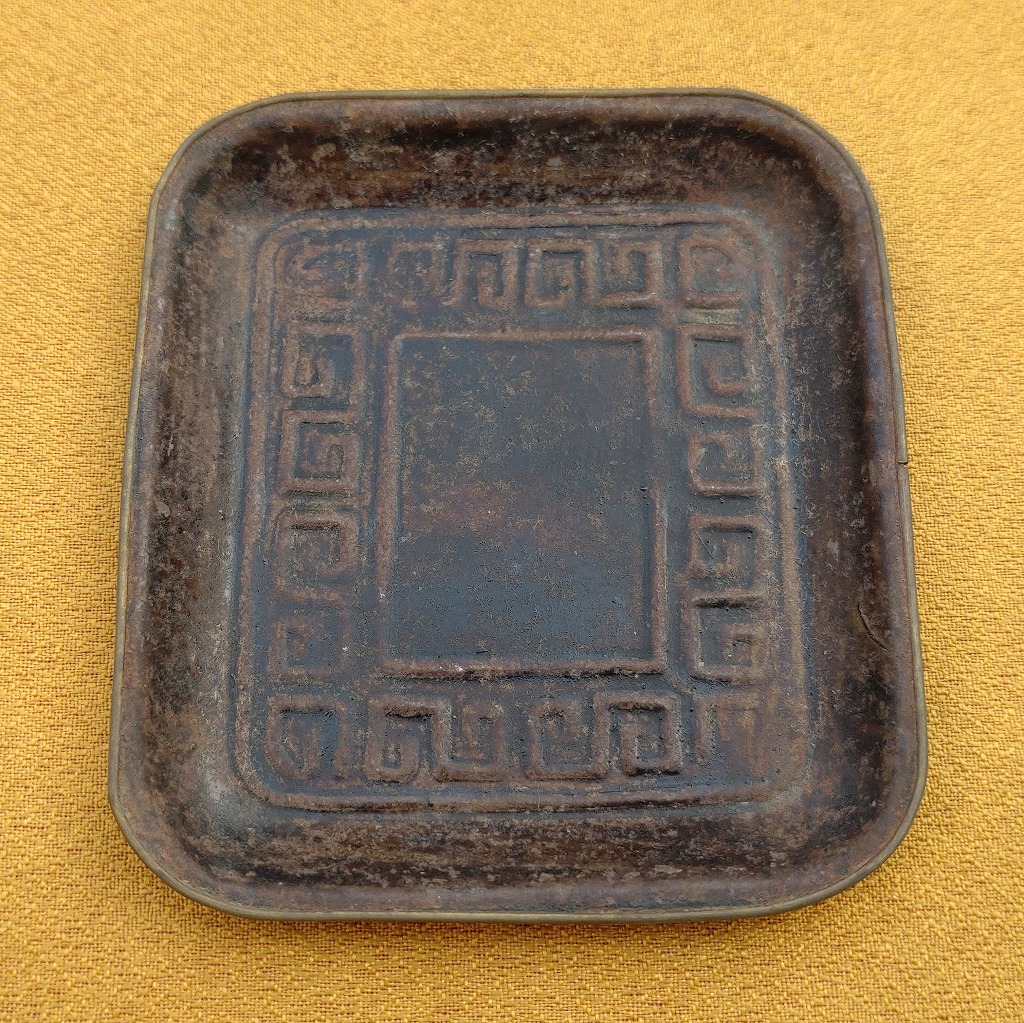 - 古い茶托 鉄製 古鉄 菓子皿 鉄皿 角皿 約85×77㎜ レトロ 古物 【6328】