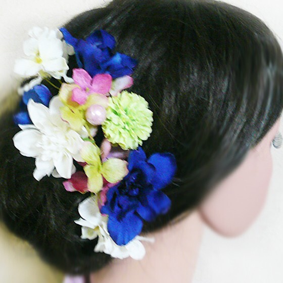 - 髪飾り 花 デルフィとダリア他 青 白 緑 ピンク 成人式 振袖 結婚式 卒業式 袴 浴衣 着物 フラワー(1)(2)