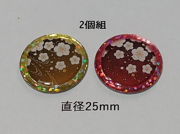 - マーカー2個組 25mm 梅和柄−A ゴルフ グラウンドゴルフ パークゴルフ マレットゴルフ 手作り品