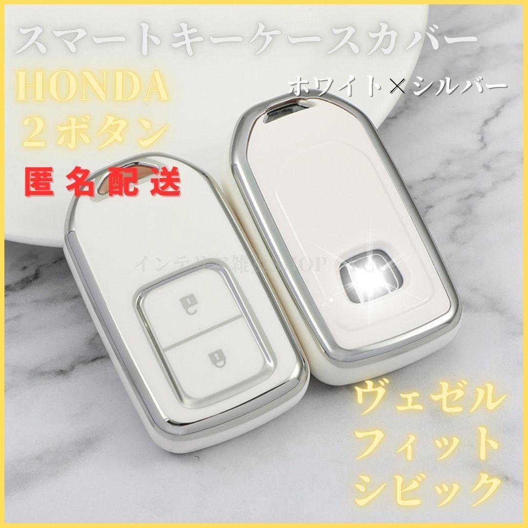 - キーケースキーカバー HONDA ホンダ ヴェゼル フィット ジェイド S660 シビック スマートキー 2ボタン白銀