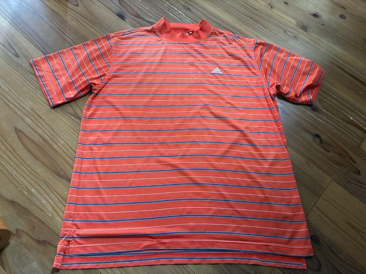 - 送料込み!! adidas 半袖シャツ ハイネック Oサイズ ボーダー オレンジ CRIMA COOL 半袖Tシャツ アディダス 175/185