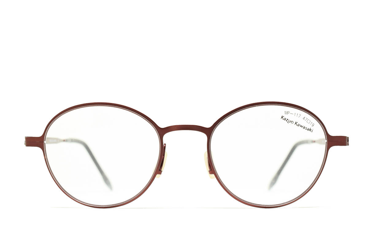 - デッドストック Kazuo Kawasaki MP 117 C.47 47-19 ラウンド メガネ サングラス フレーム 日本製 Mダークレッド 増永眼鏡