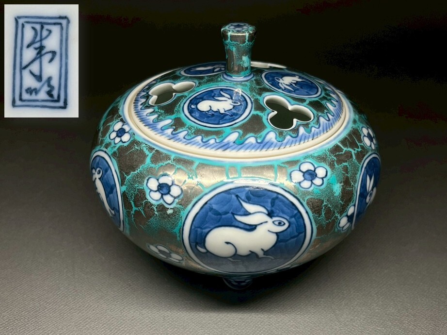 - 極上 藤井朱明 香炉 兎 有田焼 プラチナ 人間国宝 骨董 茶道具 置物 飾物 日本伝統工芸品 芸術 古美術 箱なし 初出 作家物
