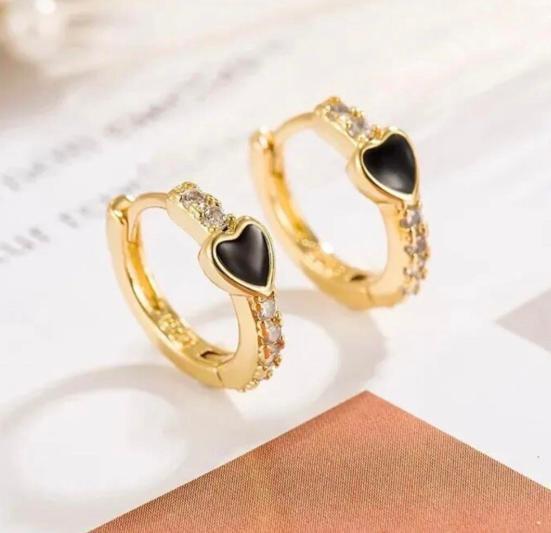 - フープピアス ブラックハート ゴールド キラキラ おしゃれ