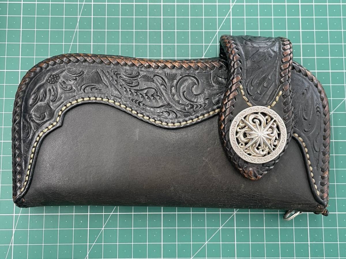 - #4120 本革長財布 SAAD サード ブラック ライダースウォレット バイカーズウォレット コンチョ