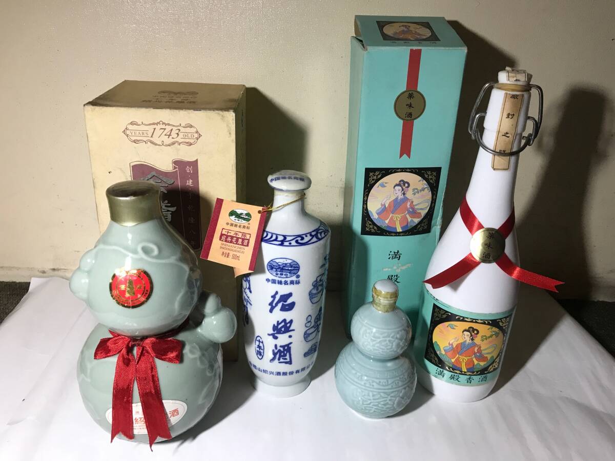 > 中国酒×4本set☆会稽山 500ml、満殿香酒 720ml、陳年紹興老酒750ml、陶器ミニボトル☆未開封保管品