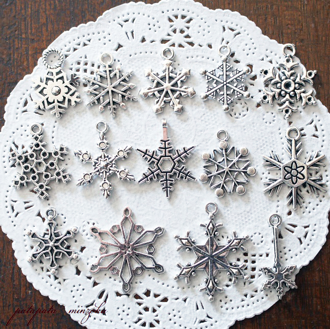 - スノー フレーク チャーム 雪の結晶 14種 セット クリスマス アクセサリー パーツ パタミン 素材 雪