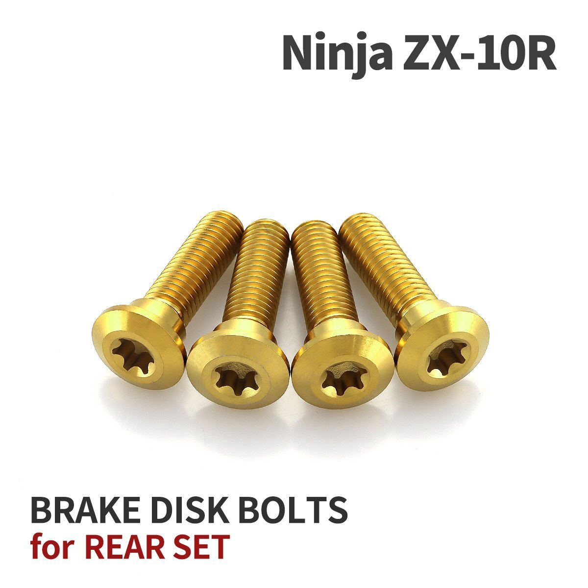 > Ninja ZX-10R 64チタン ブレーキディスクローター ボルト リア用 4本セット M8 P1.25 カワサキ車用 ゴールドカラー JA22015