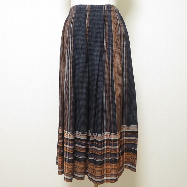 > #anc レリアン Leilian スカート 13 紺 茶 黒 シルク混 チェック ストライプ ロング 大きいサイズ レディース [956401]