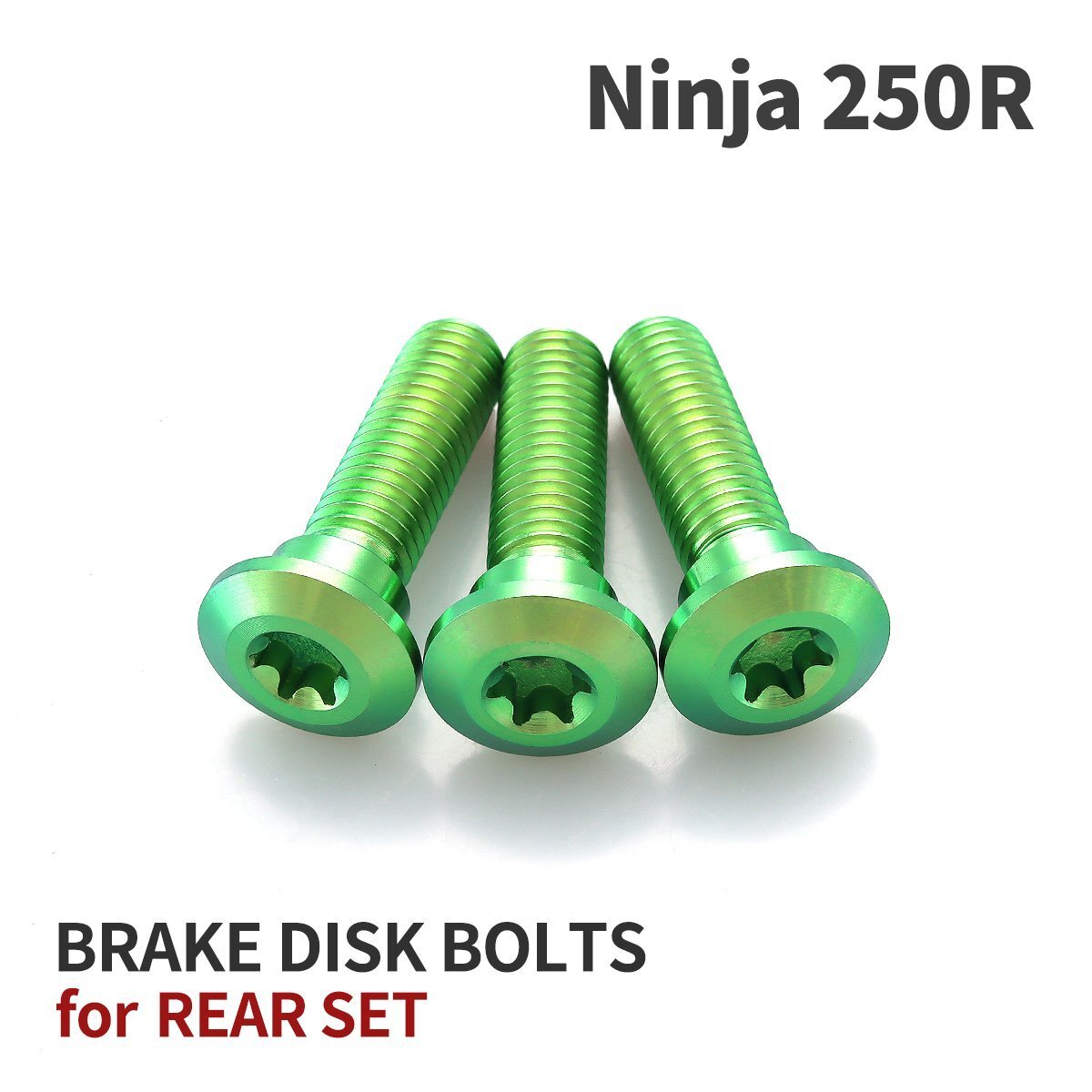 > Ninja250R 64チタン ブレーキディスクローター ボルト リア用 3本セット M8 P1.25 カワサキ車用 グリーン JA22044