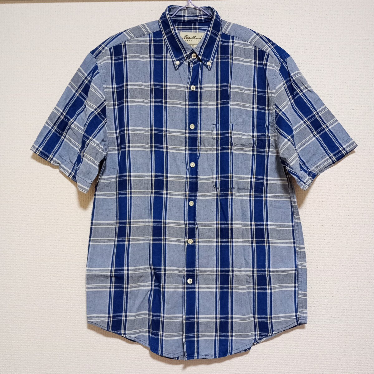 - Eddie Bauer USA製コットンオックスフォード半袖ボタンダウンシャツ XS 紺白