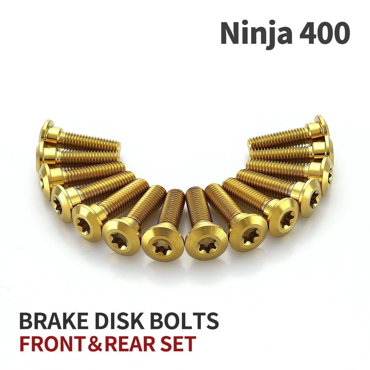 > ニンジャ400 Ninja 64チタン ブレーキディスクローター ボルト フロント リア 14本セット M8 P1.25 カワサキ車用 ゴールドカラー JA22103