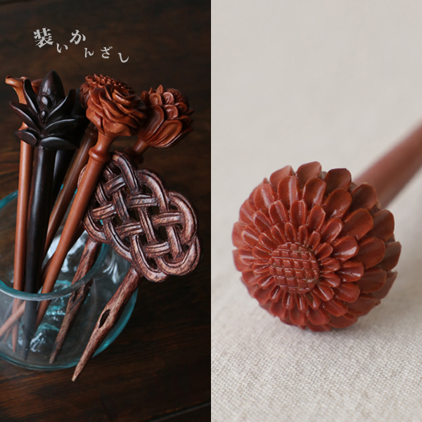 - 秋の装いSALE 木彫ウッドカービング かんざし 簪 天然木 ローズウッド 紫檀 髪飾り ヘアーダリア Q08◎