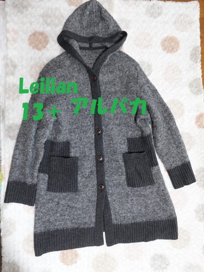- 新品同様☆+13 レリアン 大きいサイズ アルパカ混 長袖 カーディガン フード付 XL Leilian