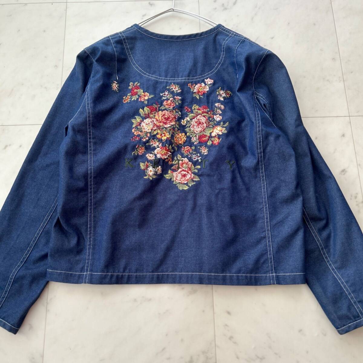 - 美品 ケティ KETTY デニムジャケット 花柄刺繍 金ボタン Mサイズ ノーカラー
