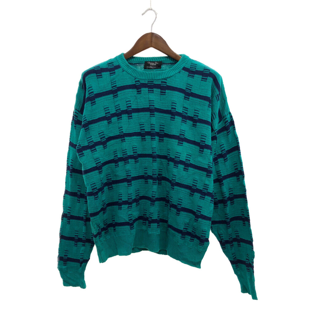 - USA製 Christian Dior クリスチャン ディオール ボーダー柄 コットン 3Dニット セーター ユーロ グリーン (メンズ L) P8151