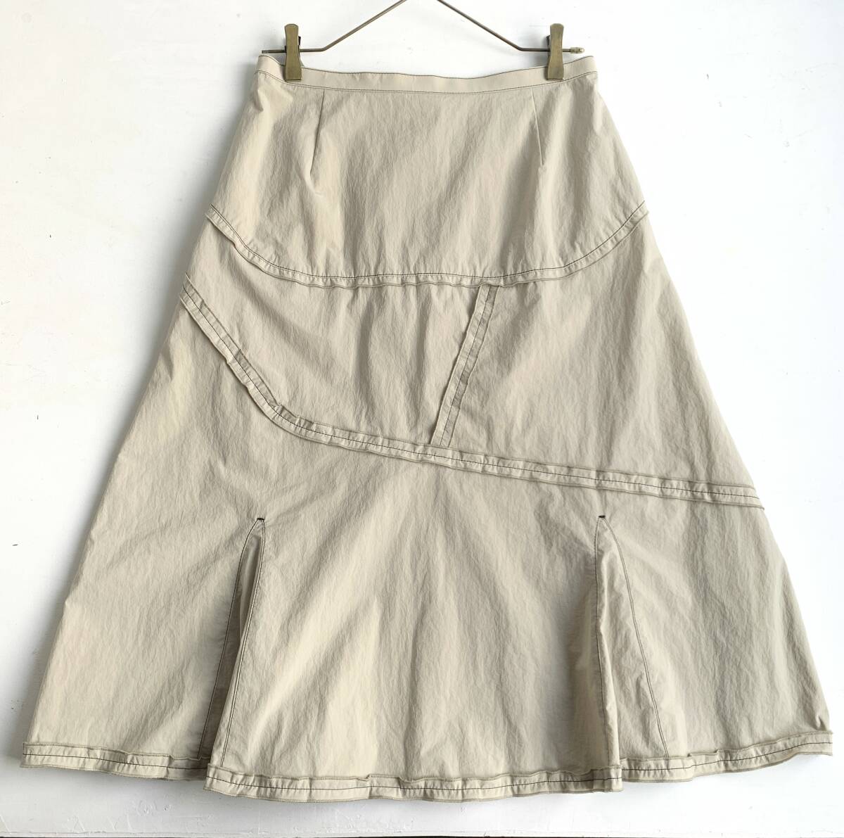 > ☆t.b SENSOUNICO センソユニコ フレアスカート パッチワーク ナイロン グレージュ系 サイズ40 古着【レターパックプラス郵送可】I