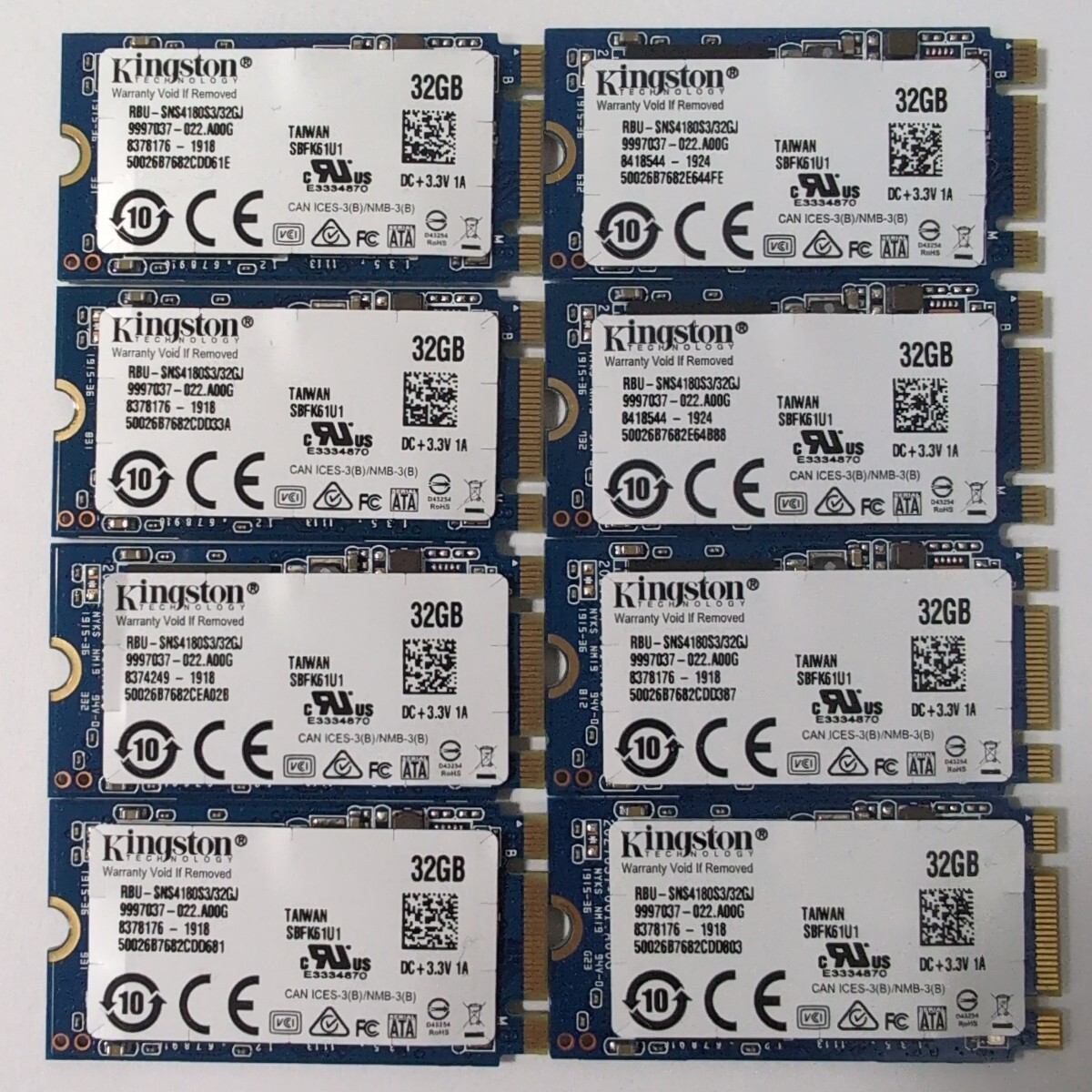 > 8枚セット Kingston SSD NGFF M.2 2242 32GB RaspberryPi/Linuxなどにも 検証用 研究用 業者様向け P01927【1円スタート/正常判定】