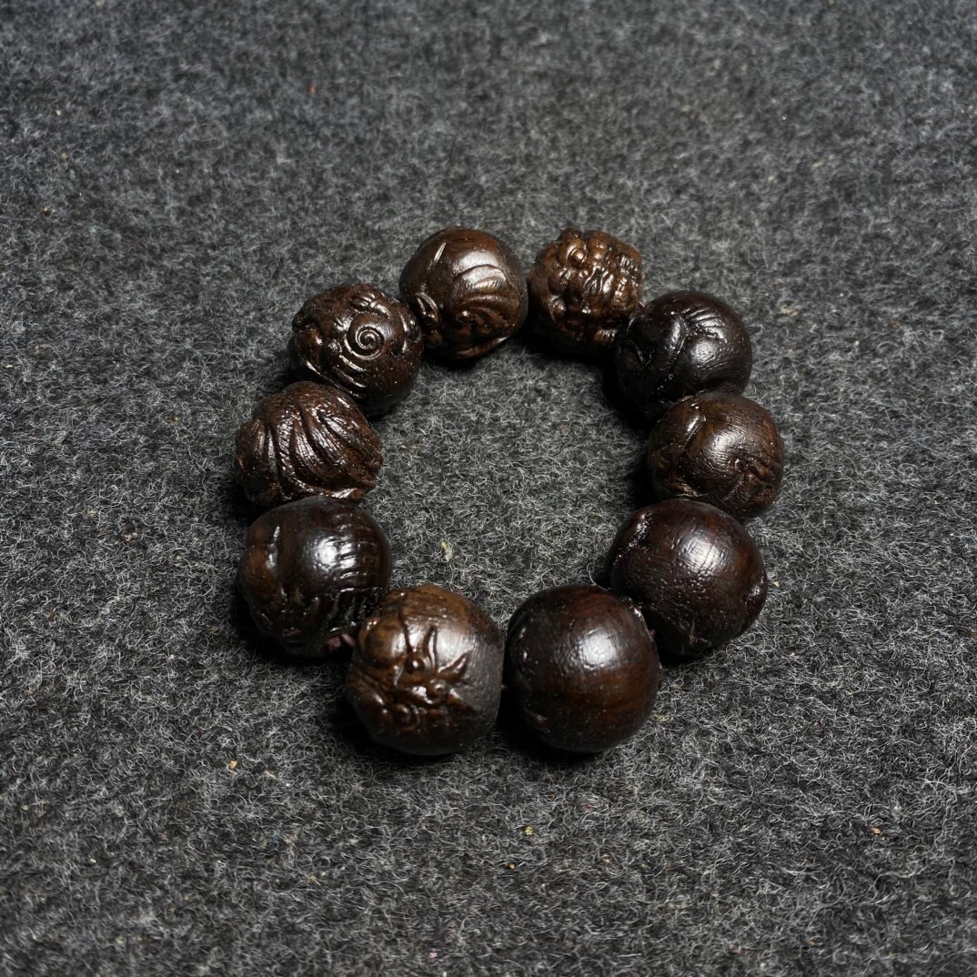 - 蔵友旧蔵出 沈香木製 細密彫 龍生九子紋 手串一對 盒付 根付裝身具 希少珍品 貴重品 置物 古賞物 中国古玩 中国古美術品