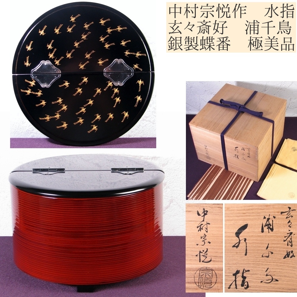 - 中村宗悦作 玄々斎好 浦千鳥 水指 銀製蝶番 幅:24.8cm 共箱・共布 極美品 茶道具/25i010