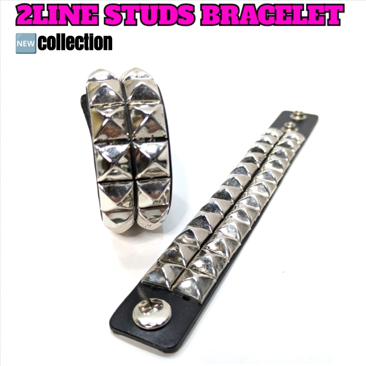 - ブレスレット 2連スタッズ 定番本革ブレスレット【新品未使用】【送料無料中】