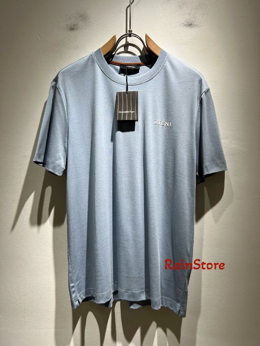 > Ermenegildo Zegna エルメネジルド ゼニア メンズT-シャツ トップス 半袖 ブルー Lサイズ コットン クルーネック シンプル 丸首