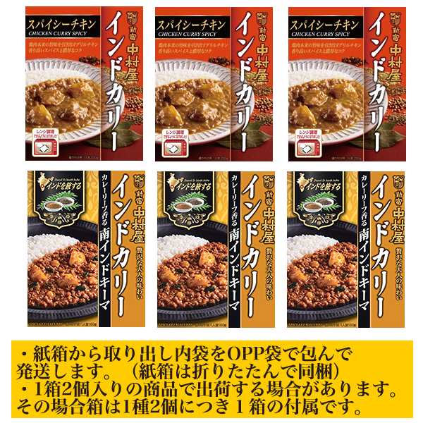 - ■新宿中村屋 インドカリー(スパイシーチキン・南インドキーマ) 2種6箱■