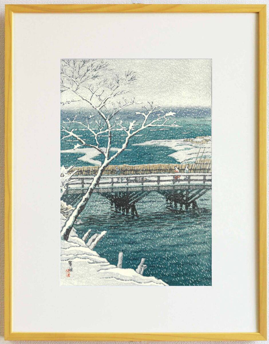 - 真作保証 額装 笠松紫浪 木版画 #28 越後柏崎 新版画 初版 昭和中期 ご自宅で古き良き日本の風景の魅力をご堪能下さい!!