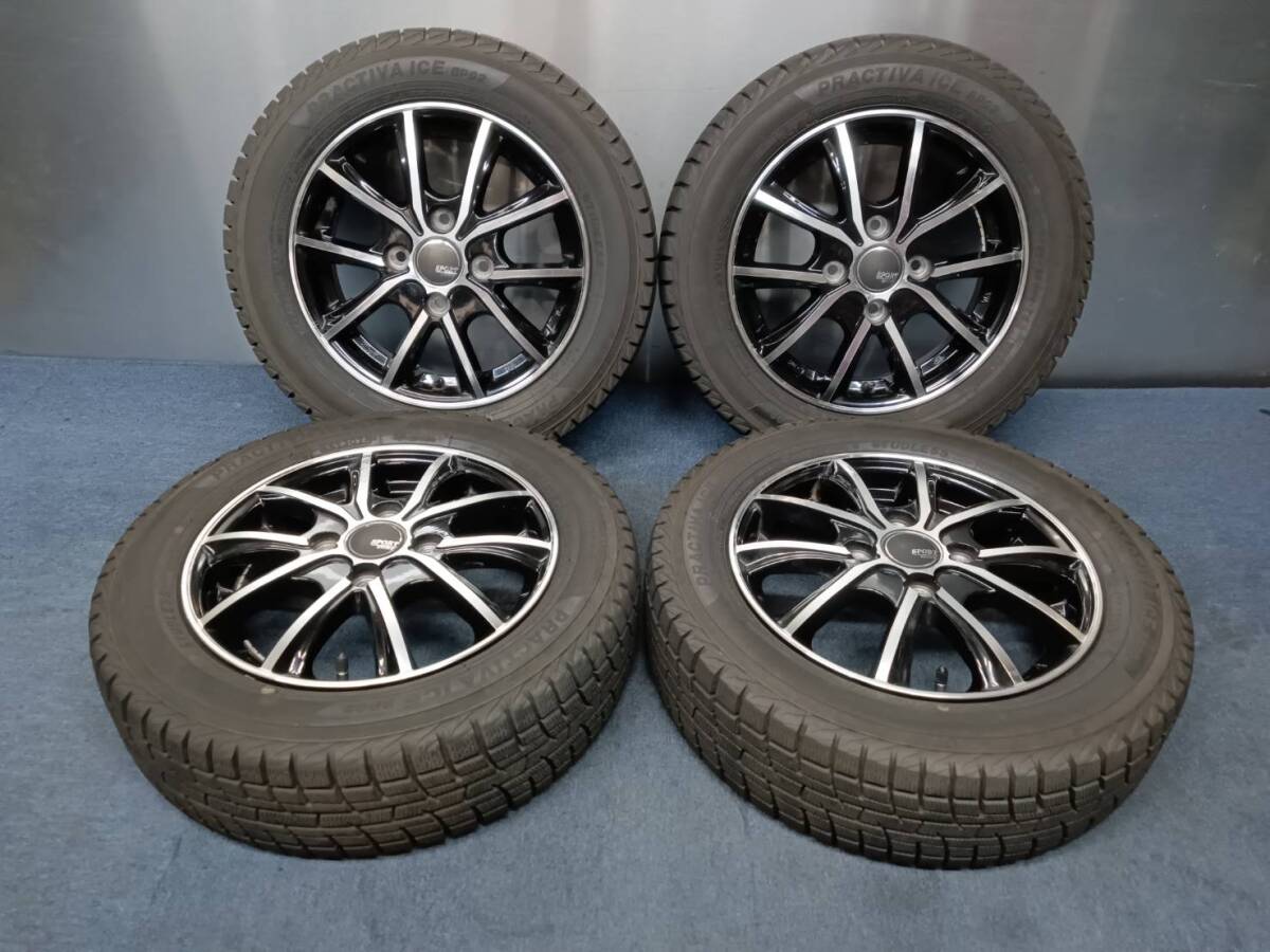 > ★8-9分山★24年製★ PRACTIVA ICE BP02 155/65R13 社外ホイール 13×4J +43 4H-100 4本セット スタッドレス 軽自動車等 C533