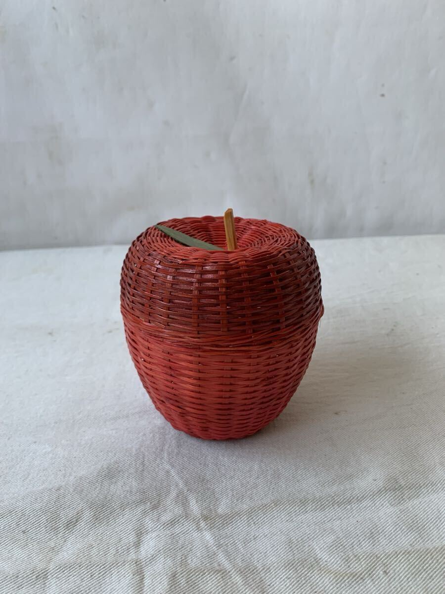 - デッドストック リンゴ型蓋付籐ケース りんご林檎小物入れ昭和レトロ古道具インテリアディスプレイコレクションアンティークビンテージ雑貨