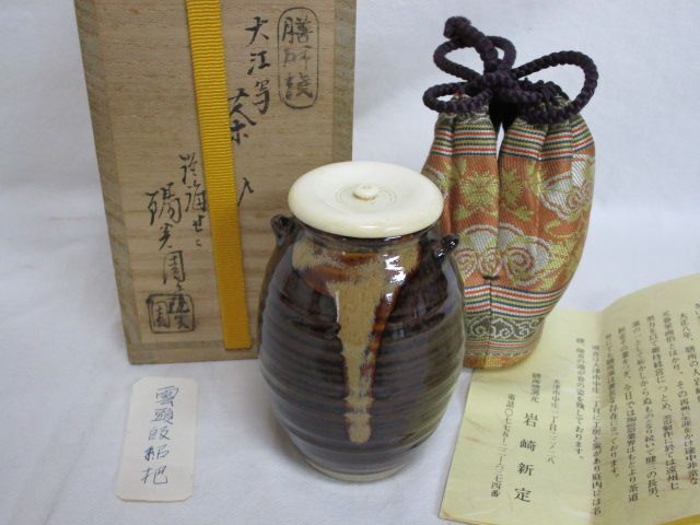 - 雉坂★【 大江写茶入 膳所焼 陽炎園 共箱 仕覆あり 】茶道具・中興名物・淡海ぜぜ・岩崎新定