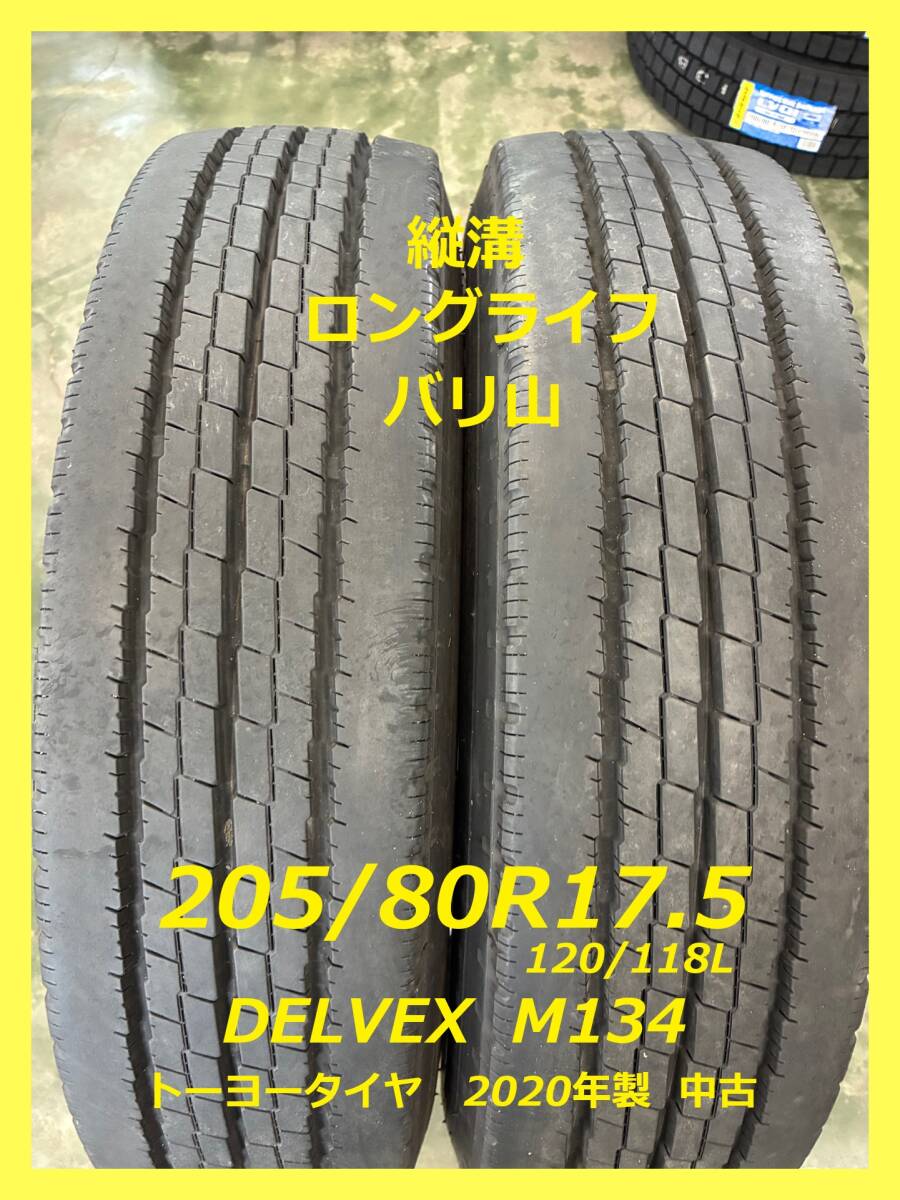 > 【M】3連休特価 バリ山 ロングライフ 205/80R17.5 DELVEX M134 トーヨー 夏 2本セット 2020年製 中古 縦溝