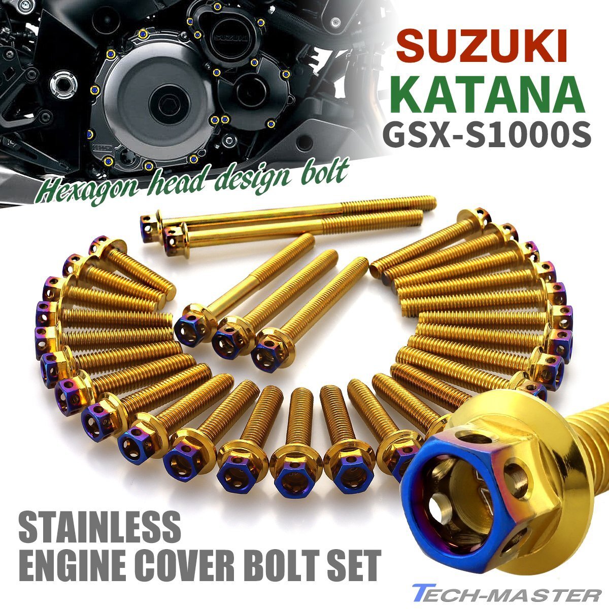 - KATANA GSX-S1000S エンジンカバー クランクケース ボルト 30本セット ステンレス製 ゴールド×焼きチタンカラー TB9085